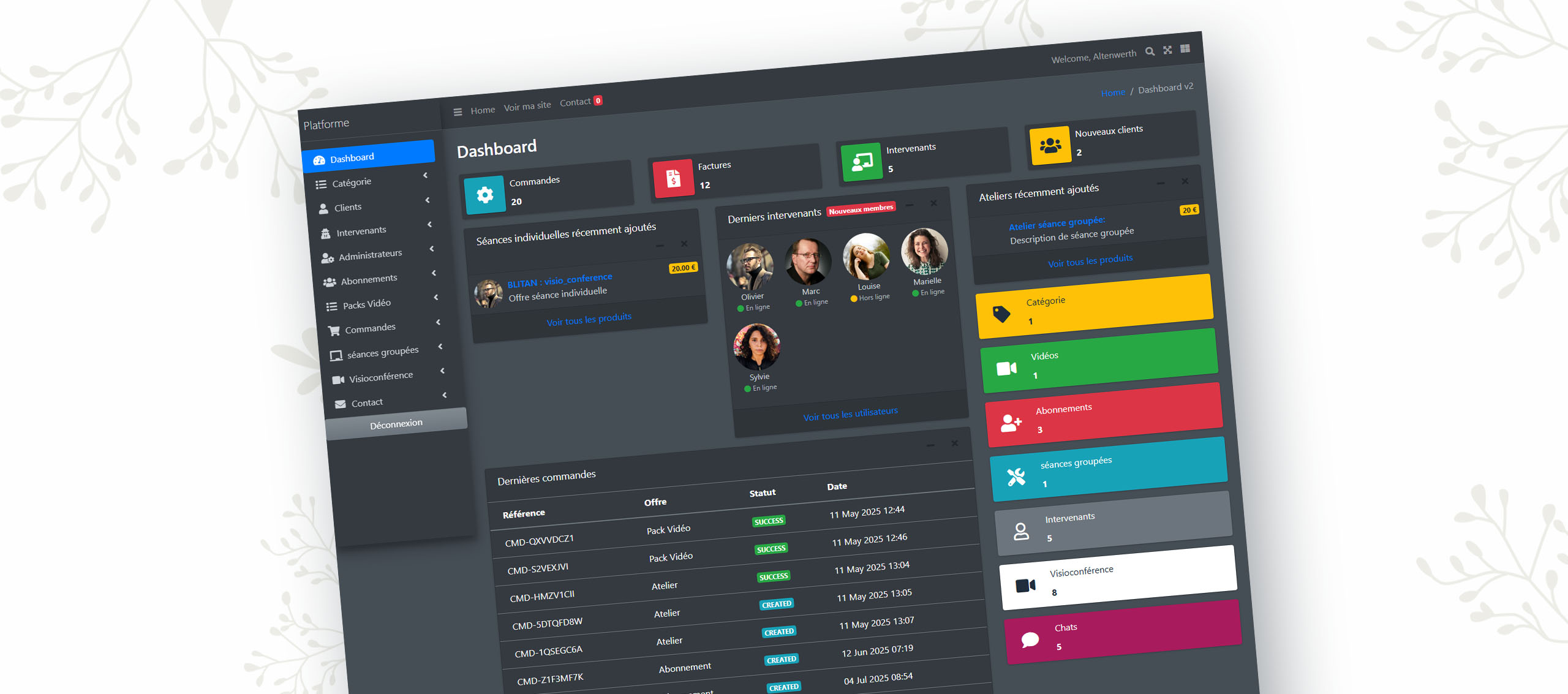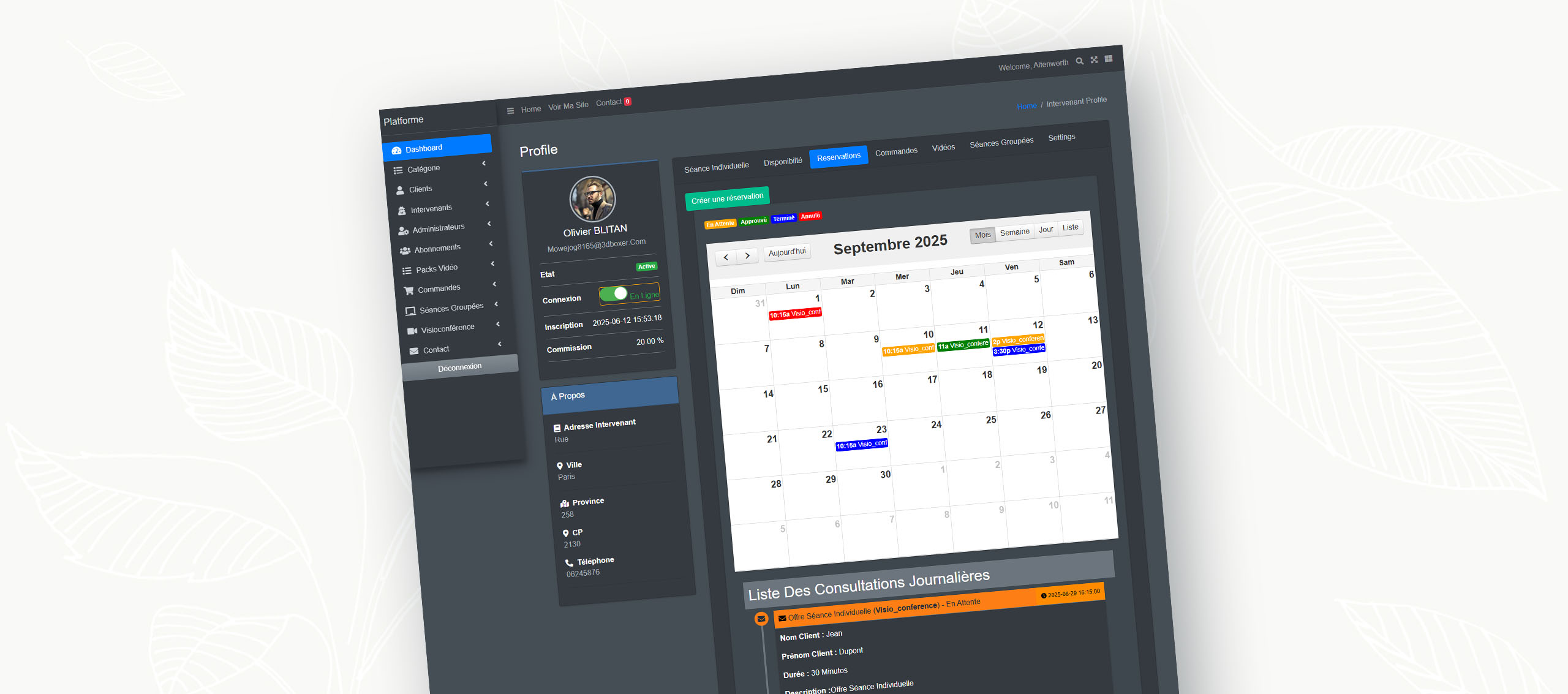 Ainsi, le back office offre à chaque intervenant un outil simple et complet pour développer sa visibilité, optimiser son organisation et monétiser efficacement ses services.