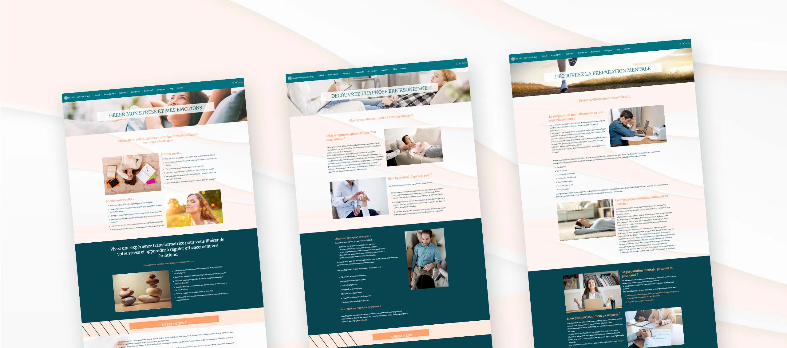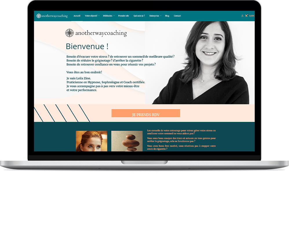 Pour Anotherway Coaching, nous avons conçu un site qui reflète l’écoute, la bienveillance et le cadre structurant du coaching proposé. L'objectif : rassurer et donner envie de franchir le pas pour un accompagnement en douceur vers le changement.