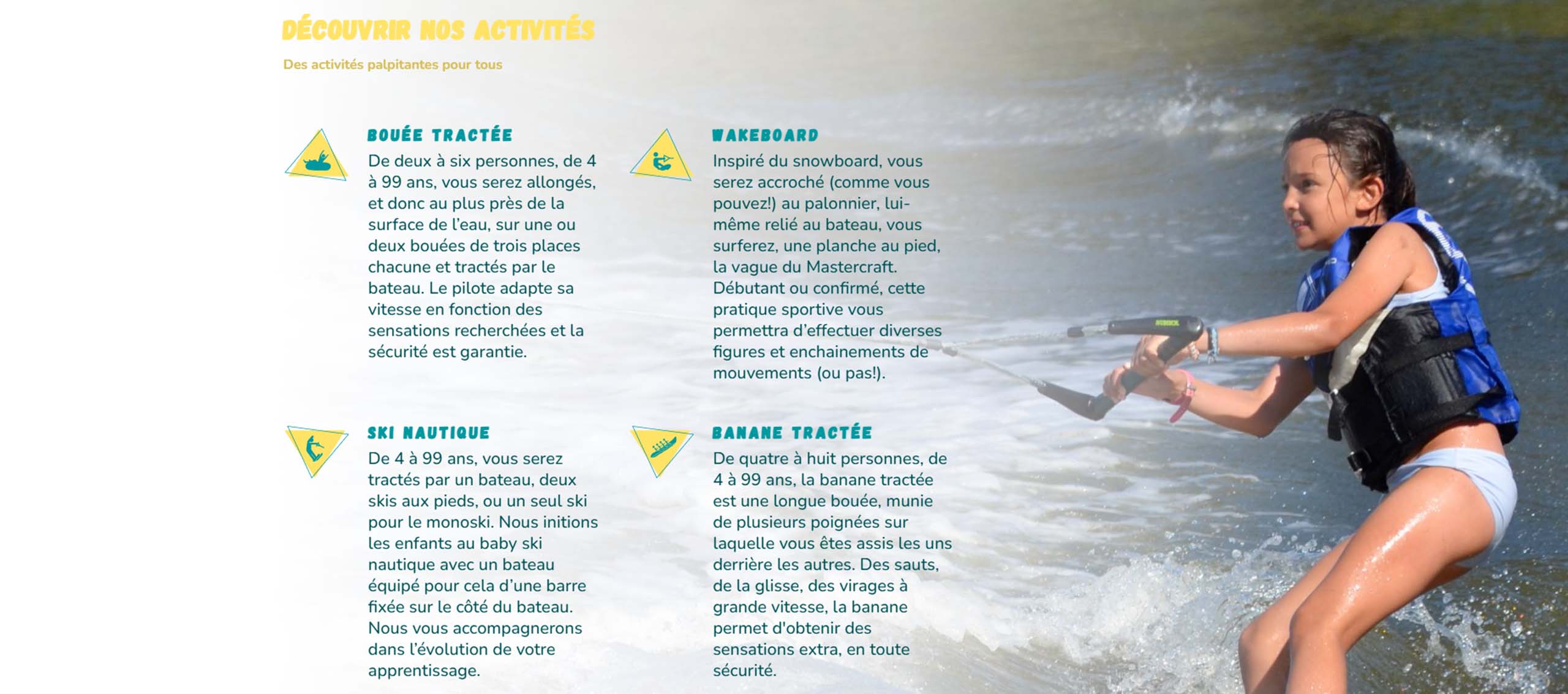 Une communication visuelle énergique pour séduire petits et grands et inciter à la pratique des sports nautiques.