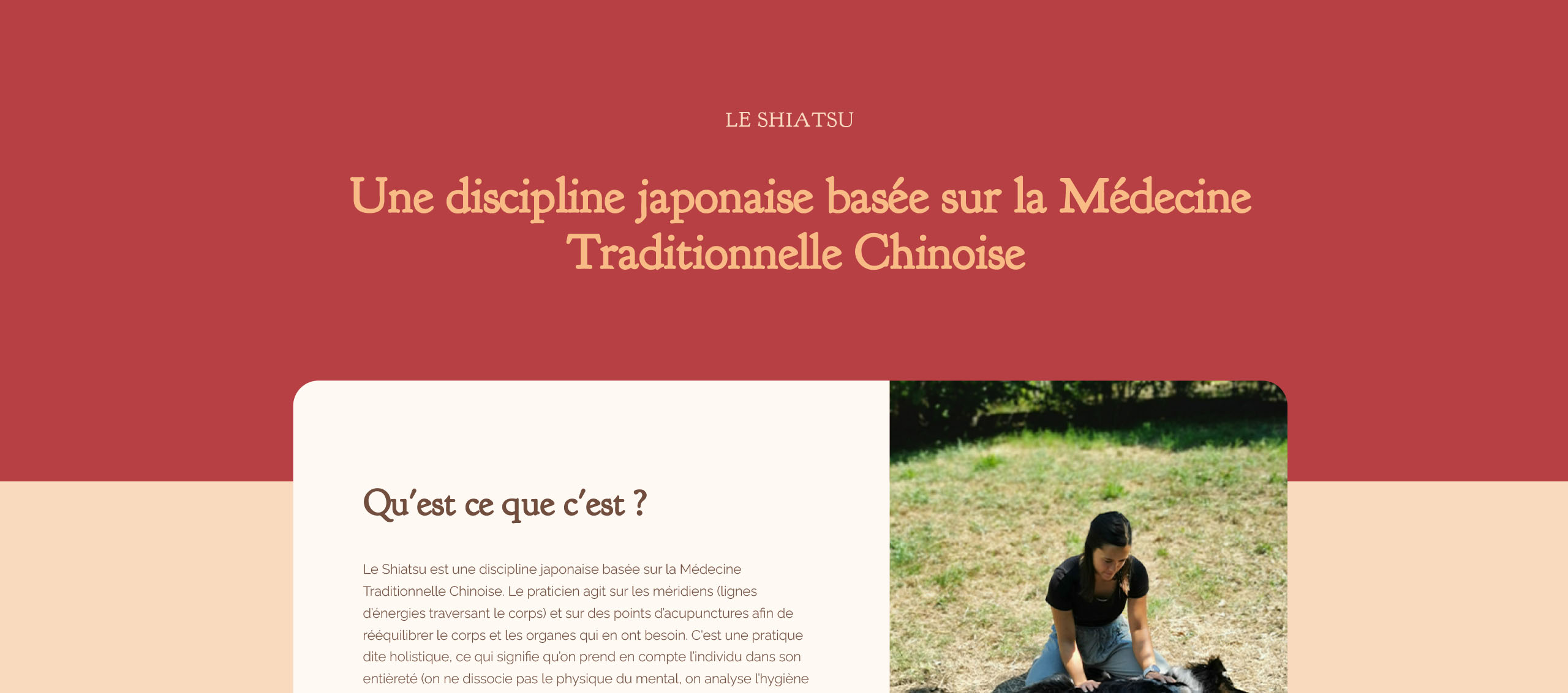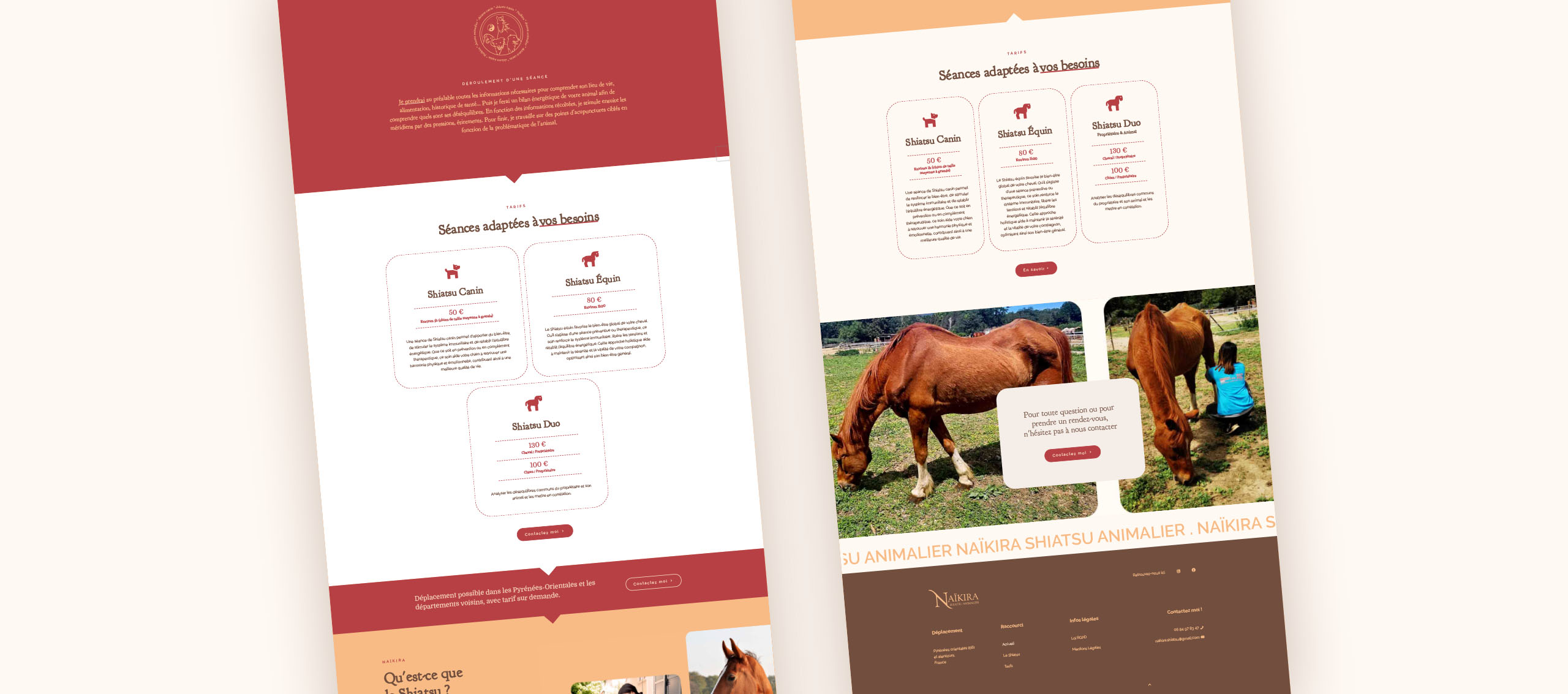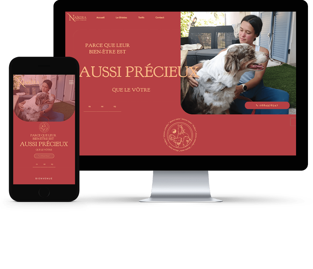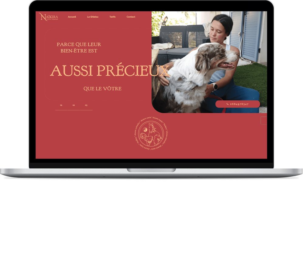 Conception d’un site vitrine sobre, rassurant et informatif, à destination des propriétaires de chiens et chevaux. L'accent est mis sur la clarté des services, les bienfaits du shiatsu et l’approche bienveillante de la praticienne.