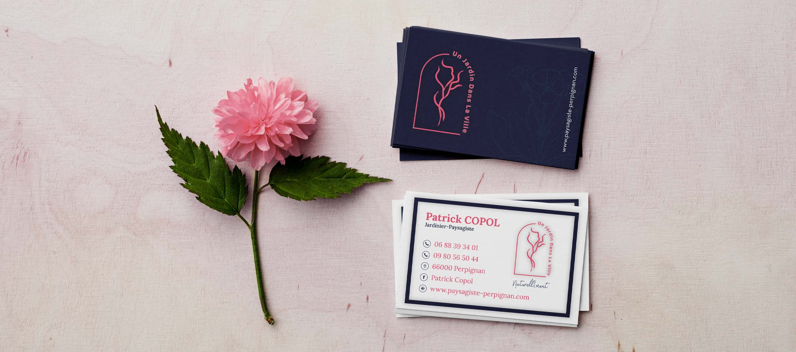 Logo inspiré de la flore urbaine, palette rose ardente, typo douce & élégante.